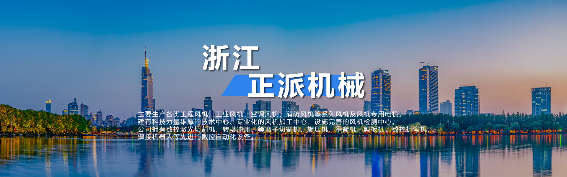 浙江正派机械科技有限公司(曾用名:台州正派电器有限公司)是专业化风机制造企业,位于风机制造基地浙江温岭,公司拥有标准厂房20000余平米,注册资金1000万元人民币,建有科技力量雄厚的技术中心、专业化的风机加工中心、设施完善的风机检测中心。公司拥有数控激光切割机、转塔冲床、等离子切割机、旋压机、平衡机、剪板机、数控折弯机、焊接机器人等先进的数控自动化设备。